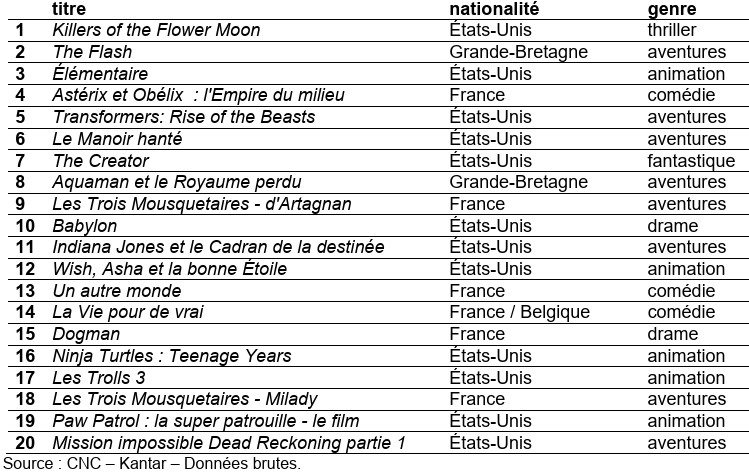 Classement 2023 des films aux plus gros investissements publicitaires