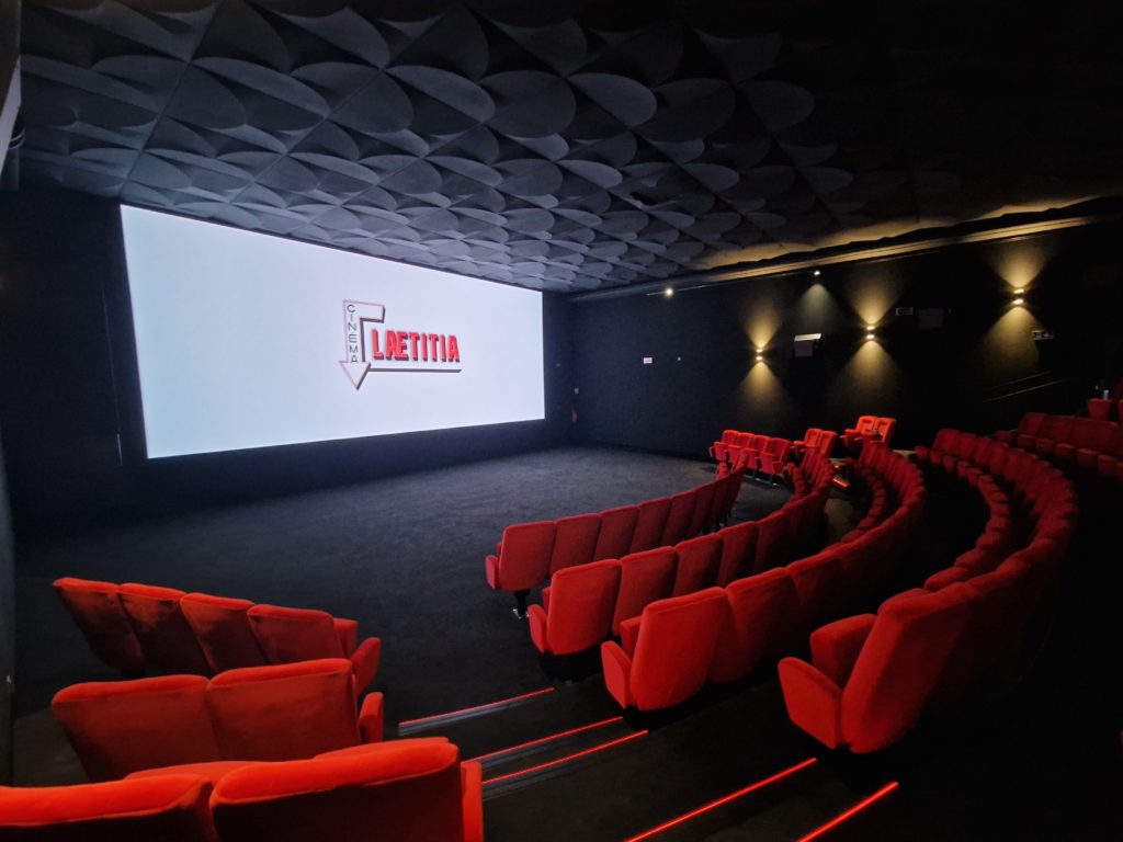 C’est donc avec près de deux ans de retard que le nouveau Laetitia rallume ses projecteurs. La grande salle historique de 420 places a été divisée en trois plus petites : une de 180 sièges, équipée en laser 4K, a été aménagée dans le balcon désormais fermé, tandis que deux de 52 places, en laser 2K, ont été agencées dans la partie orchestre. Toutes sont dotées d’un son 7.1. Si les salles affichent une modernité similaire à celles de l’Ellipse, le reste du cinéma a volontairement conservé son aspect vintage, auquel le public ajaccien est très attaché. « Je voulais à tout prix éviter de dénaturer cet établissement datant de 1950 et redonner à Ajaccio un site qui participe à la nostalgie collective », explique Michel Simongiovanni. Épaulé par l’architecte corse Frédéric Pinna, l’exploitant a apporté des modifications mineures sur la façade qui garde son enseigne historique ; dans le hall, a été recréé un comptoir en bois d’époque.