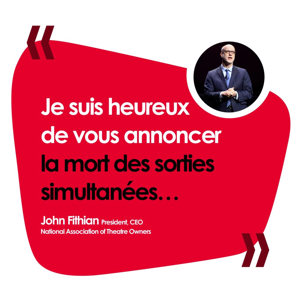 Le 26 avril, au Colosseum du Caesars Palace, John Fithian, président de la Nato (association des cinémas américains) a estimé, sous les applaudissements, que la sortie simultanée de films en salle et à la maison (le « day-and-date ») était mort. Le responsable ? Le piratage. « Lorsque la copie parfaite d’un film se retrouve en ligne et se répand, cela impacte très négativement notre industrie. » Quelques heures à peine après sa déclaration, John Fithian rappelait que les sorties en salles sont la force motrice des succès au box-office, qu’elles créent une prise de conscience et stimulent même l’activité du streaming.
