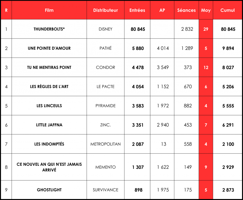 - Thunderbolts* (Disney) : 80 000 entrées pour 29 e/s