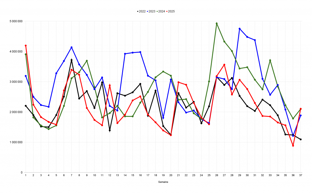 Entrées réalisées du 10 au 16 septembre 2025 :