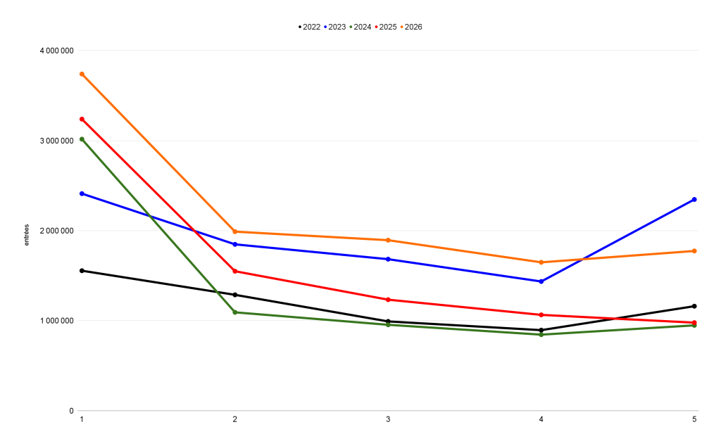 Entrées cumulées du 28 janvier au 1er février 2026 :