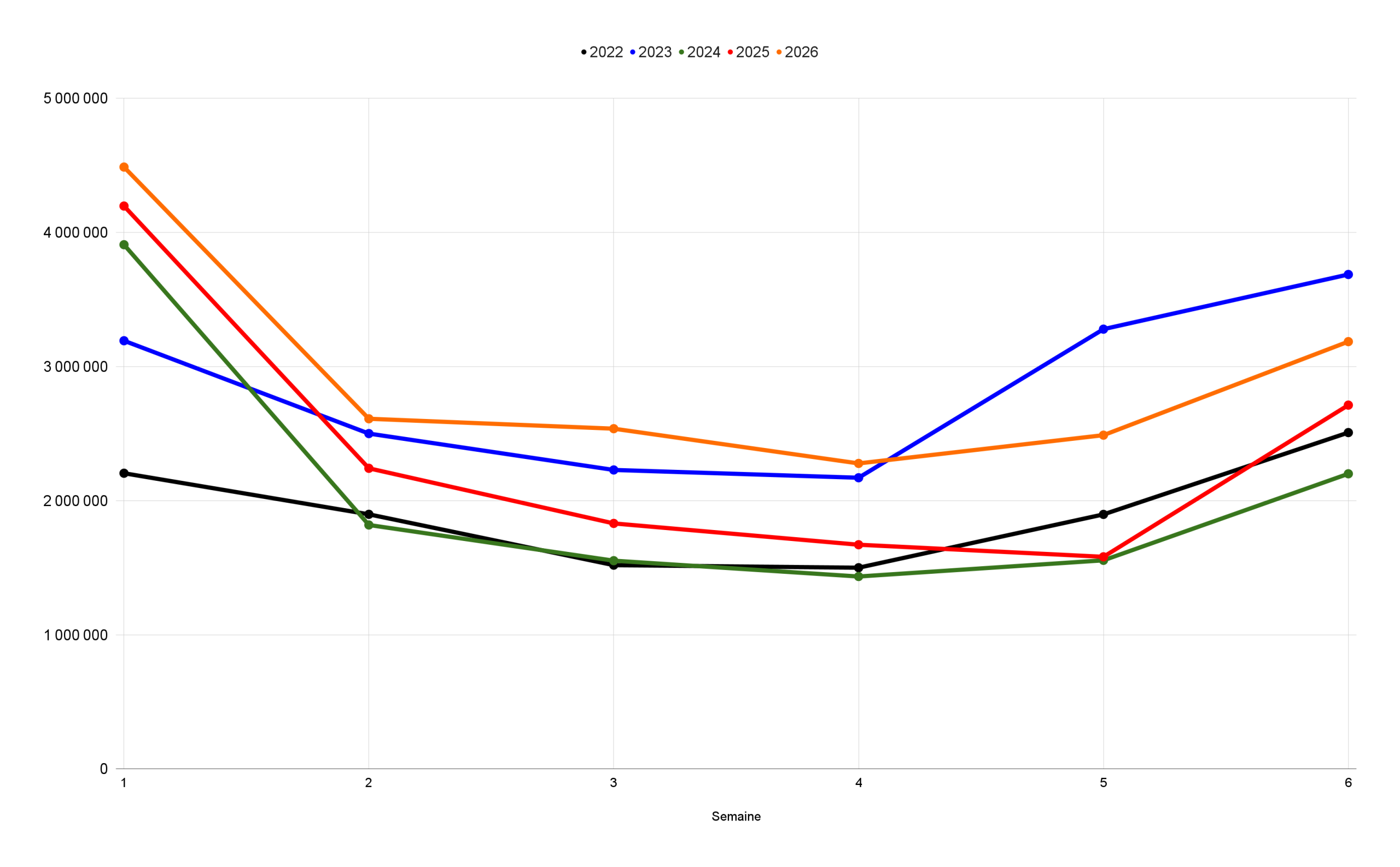 La sortie de Pathé fait décoller une fréquentation qui plane bien au-dessus de 2025, mais n’atteint pas les niveaux de 2023.