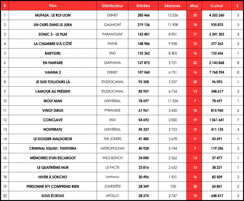 À lire aussi | Box-office week-end : 4 millions pour Mufasa