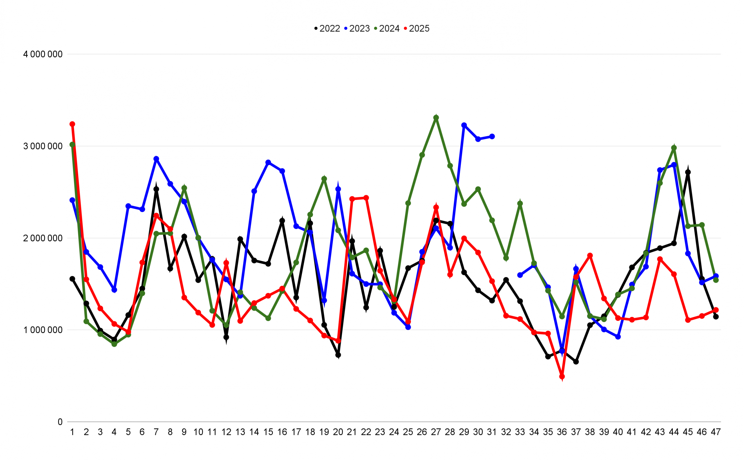 Entrées du top 10 hebdomadaire (2022-2025) :