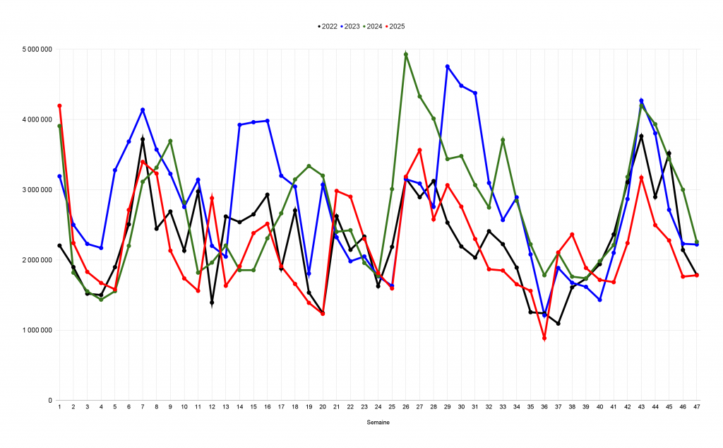 Entrées réalisées du 19 au 25 novembre 2025 :