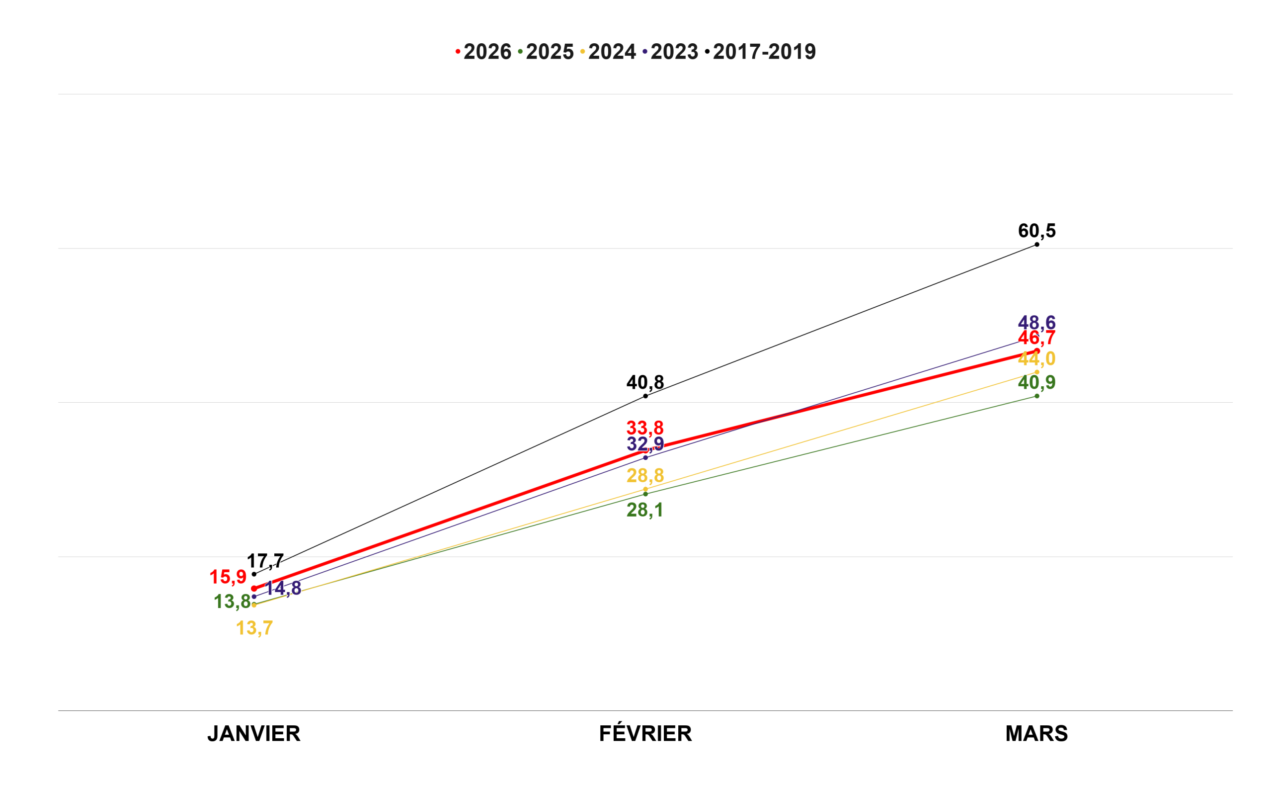 Alors que la fréquentation 2026 affichait d’excellents résultats, le troisième mois de l’année marque une nette inflexion.