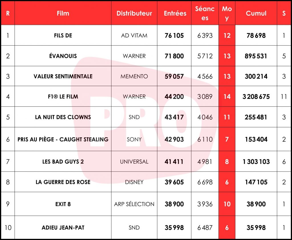 Box-office week-end : Fils de s’impose dans un marché historiquement bas