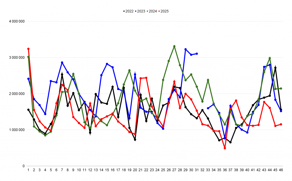 Entrées réalisées du 12 au 16 novembre 2025 :