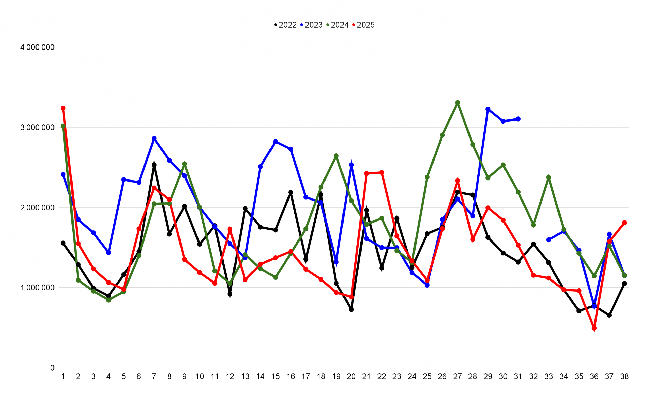 Entrées du top 10 week-end (2022-2025) :