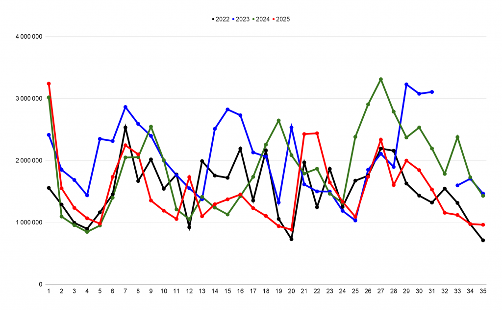 Entrées cumulées du 27 au 31 août 2025 :