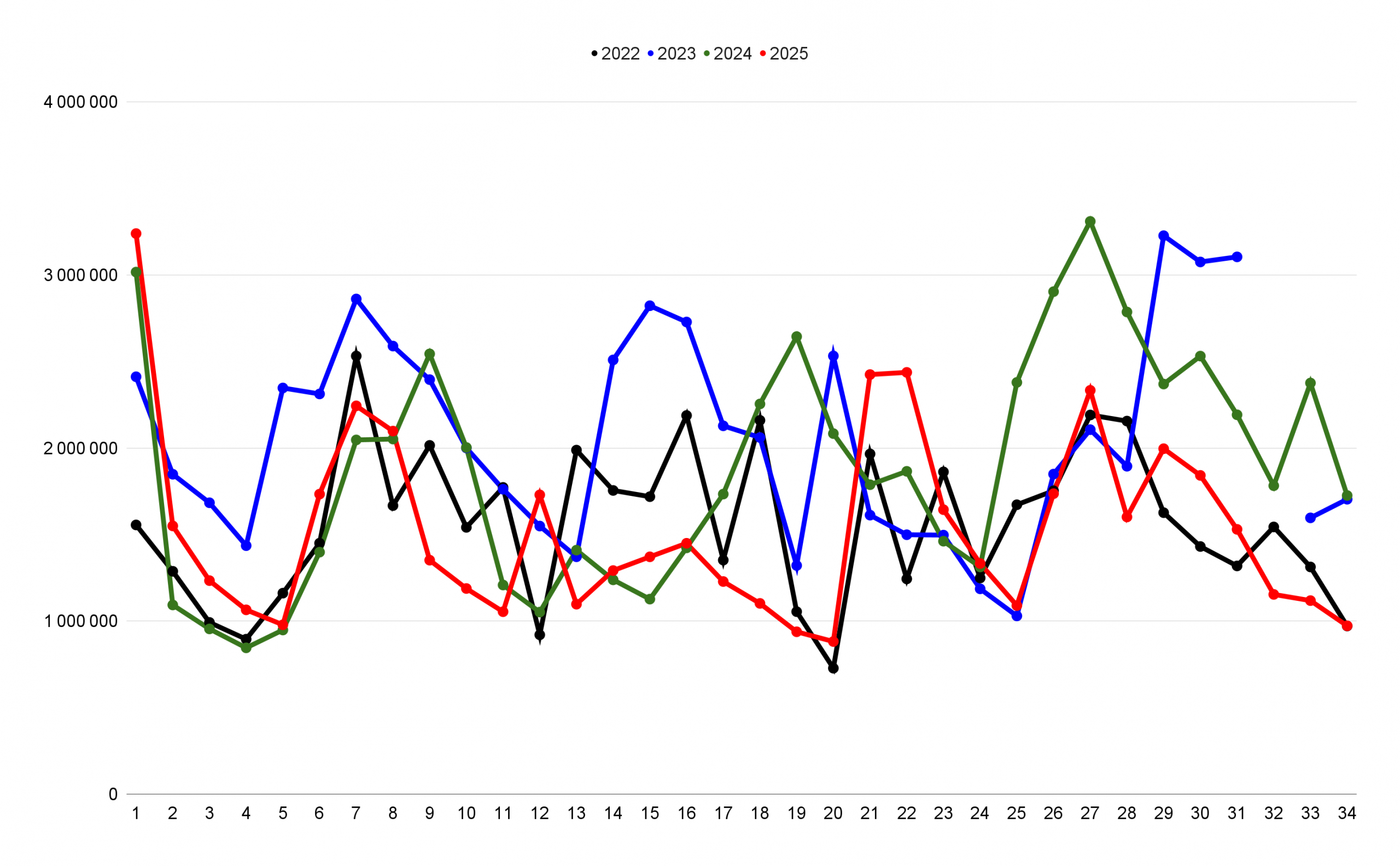 Au total, le top 10 week-end réalise 972 000 entrées, soit une baisse de 13 % par rapport à la semaine précédente, et un fort recul de 43 % par rapport aux week-ends équivalents de 2023 et 2024. Il s’agit de la première fois depuis la semaine du 14 mai que le classement passe sous le million d’entrées.