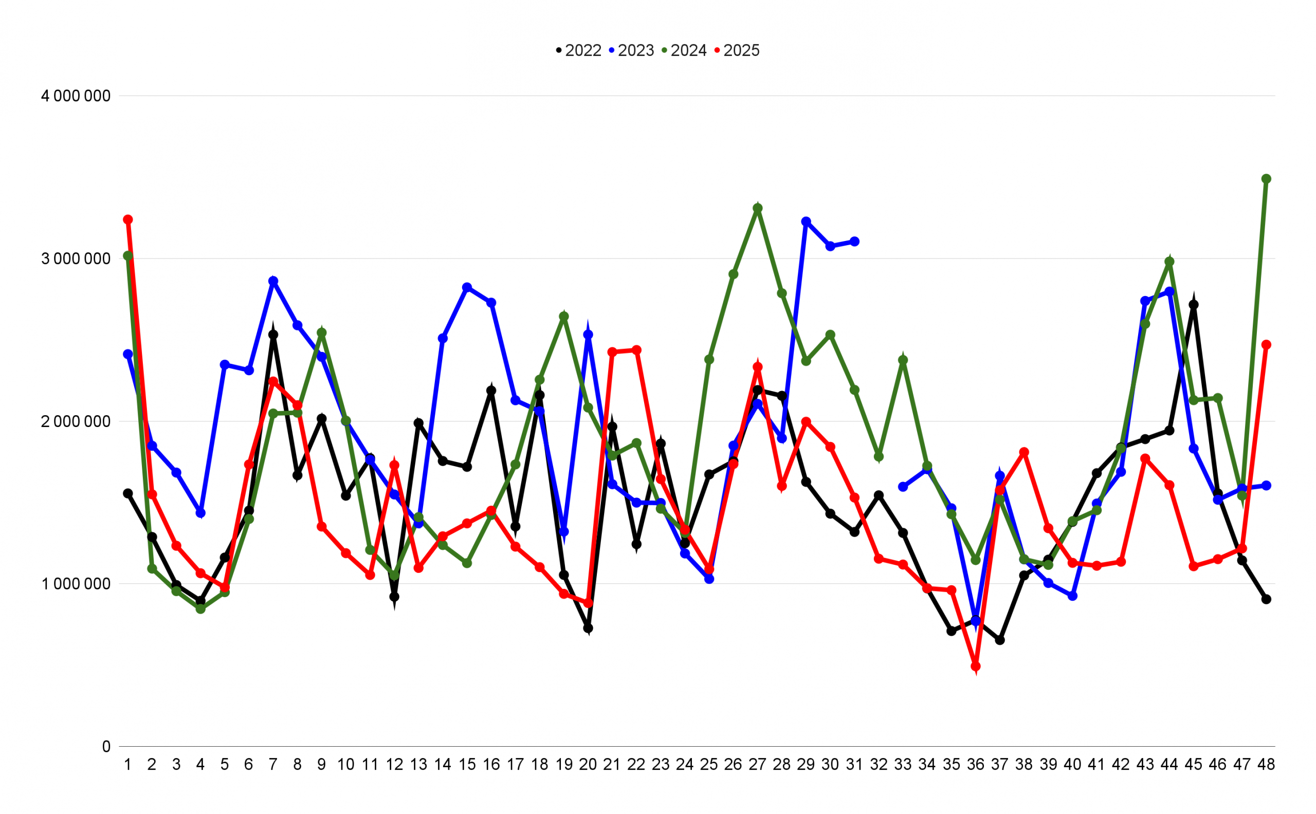 Entrées réalisées du 26 au 30 novembre 2025 :