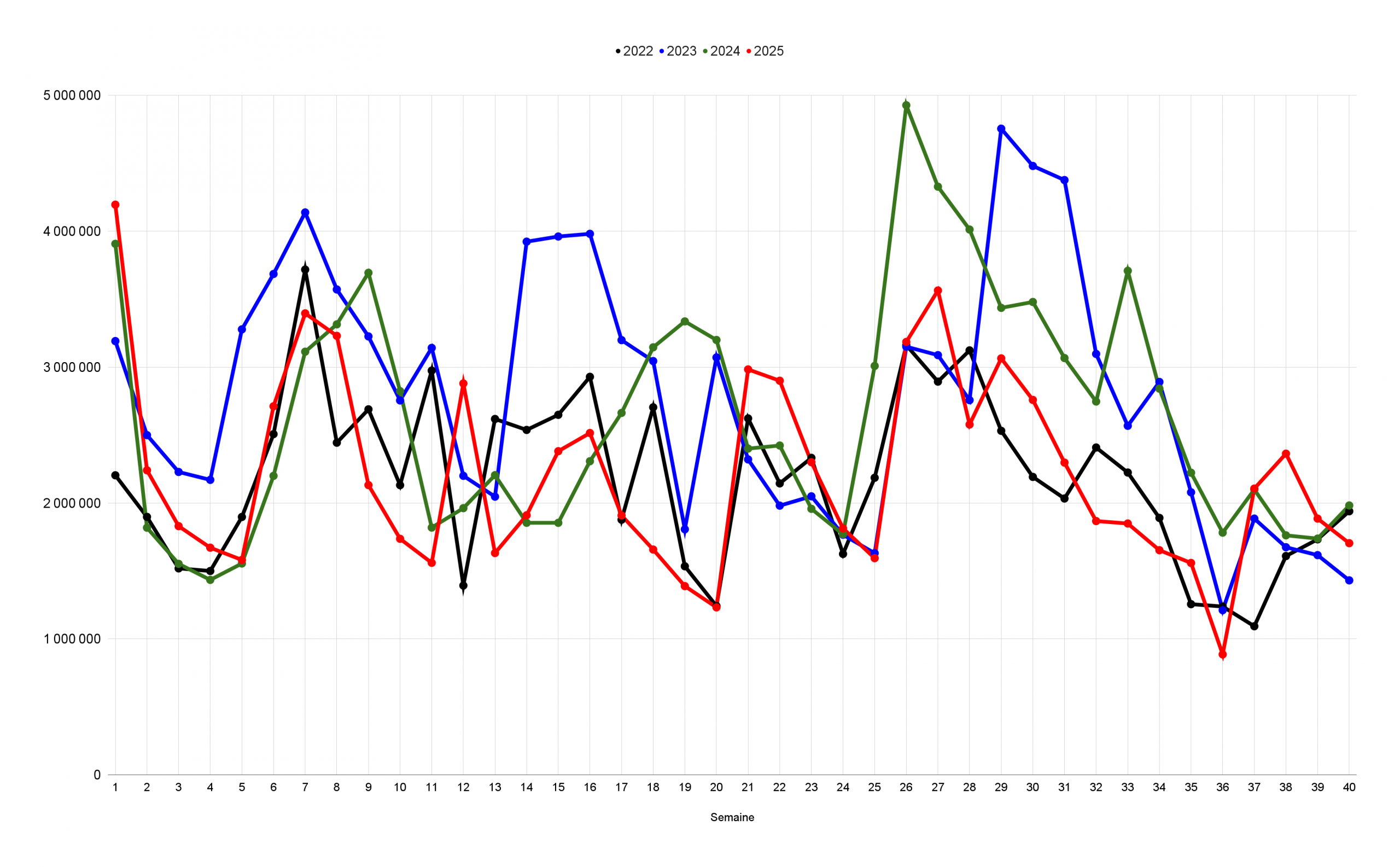 Entrées cumulées du 1er au 7 octobre 2025 :