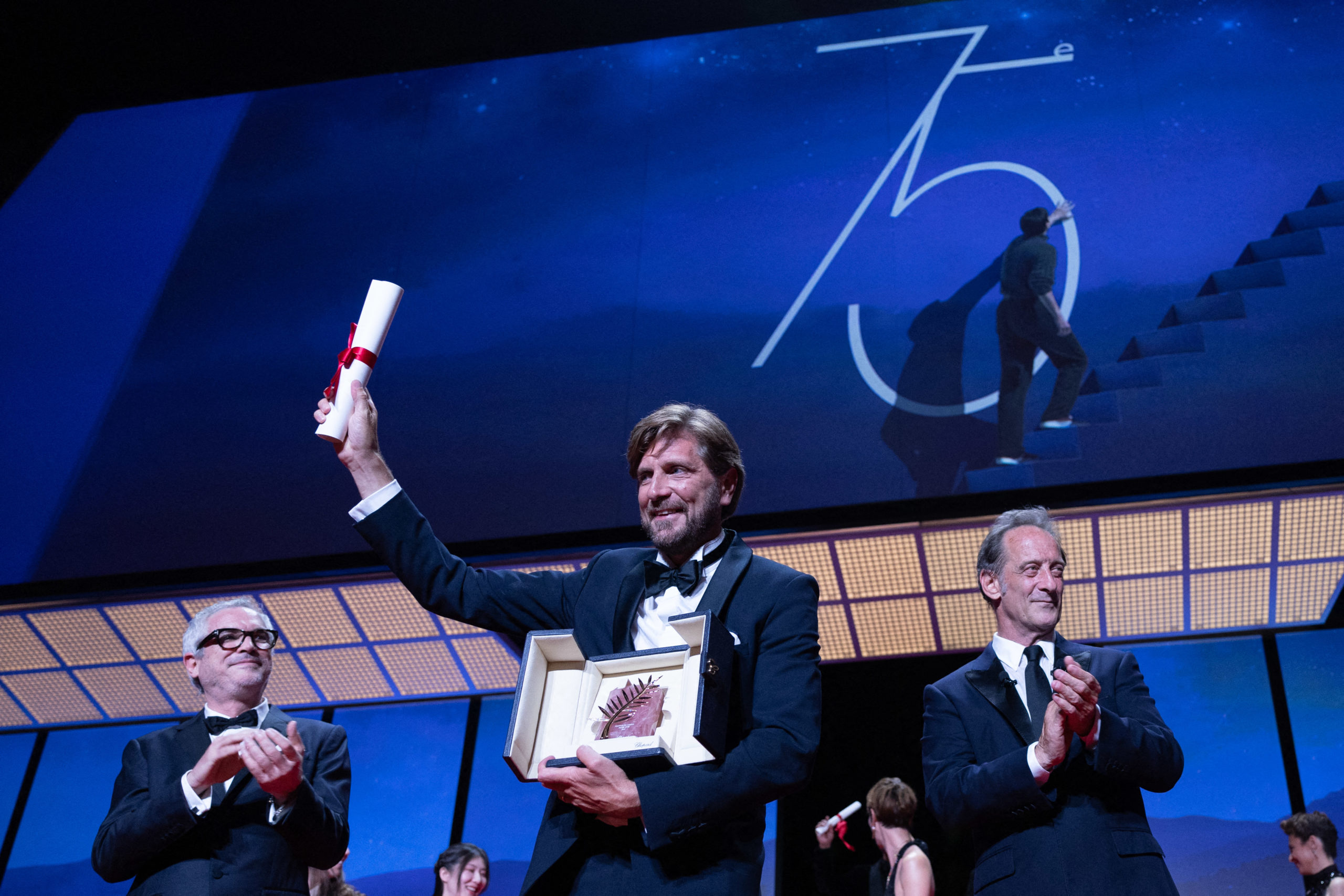 Et de deux ! Le réalisateur suédois Ruben Östlund a été couronné par la Palme d’Or pour Triangle of Sadness (Sans filtre en français), succédant ainsi à Titane de Julia Ducournau. C’est sa deuxième palme après celle de 2017 pour The Square. Le film a également été sacré par le jury des cinémas art et essai. Il offre au passage à son distributeur, Bac Films, sa dixième Palme d’Or, la deuxième sous la présidence de David Grumbach.