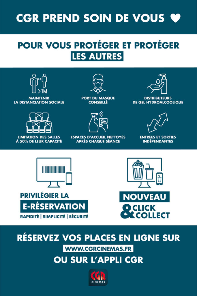 Jocelyn Bouyssy l’affirme, le groupe est prêt depuis un certain temps pour le 22 juin. « Pas de grosses surprises, les mesures sanitaires validées par le gouvernement correspondent à ce qui avait été proposé par le groupe de travail de la Fédération. » Le directeur général espère cependant que ces mesures seront provisoires et assouplies au fil du temps : « Il faut que les gens se sentent rassurés sans que ce soit anxiogène. » Non seulement les recommandations ont été suivies, mais CGR va plus loin, avec notamment l’achat de 5 000 masques lavables pour les salariés auprès d’une société rochelaise (Martine Sellerie), ainsi que l’installation de plexiglas aux différents points de vente et de distributeurs de gel dans toutes les salles du groupe.