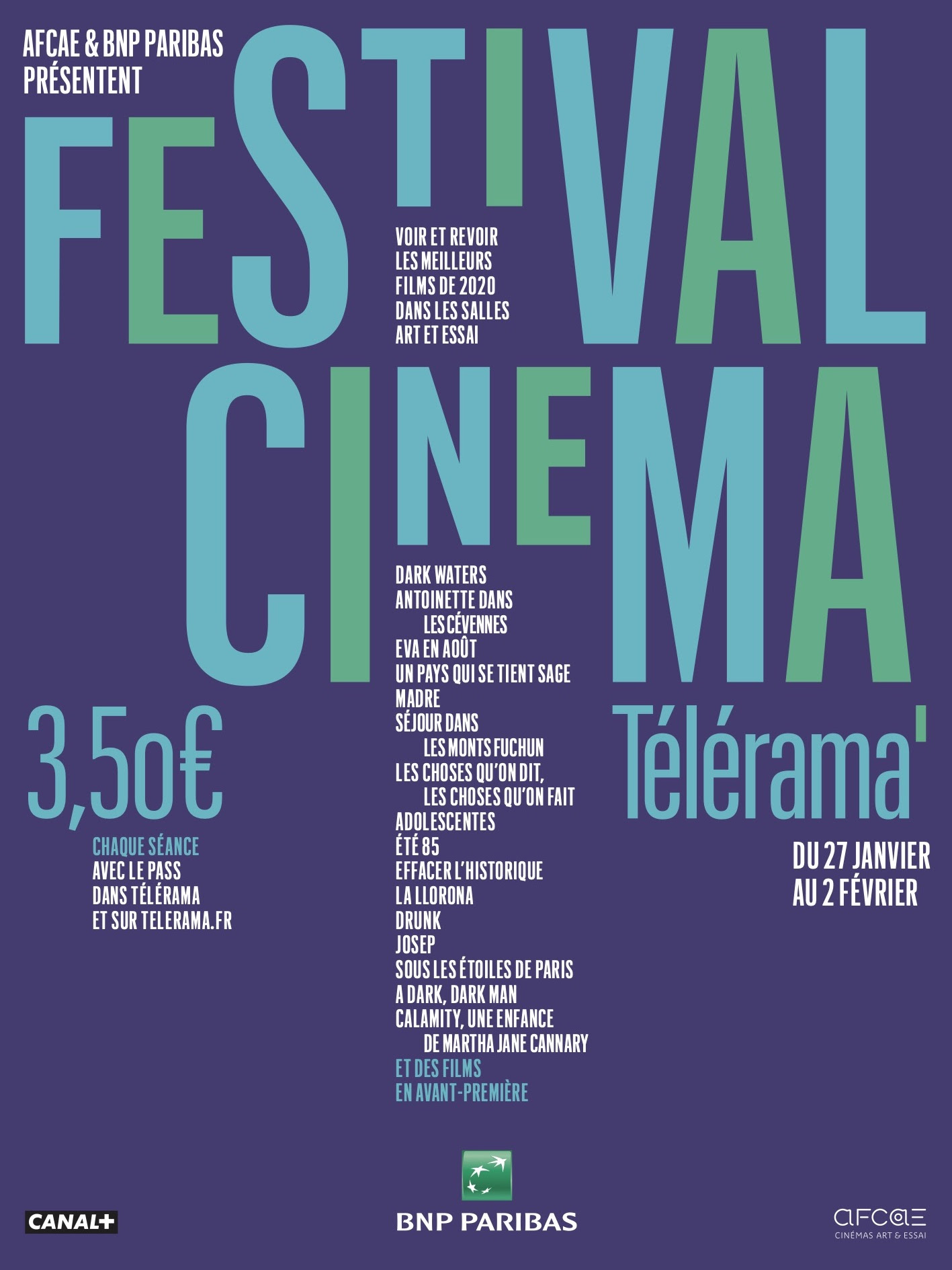 Les seize films de 2020 et six titres en avant-première retenus par la rédaction de Télérama, et qui seront proposés dans plus de 400 salles art et essai à 3,50 € la séance (avec le pass disponible dans les Télérama des 20 et 27 janvier) sont :