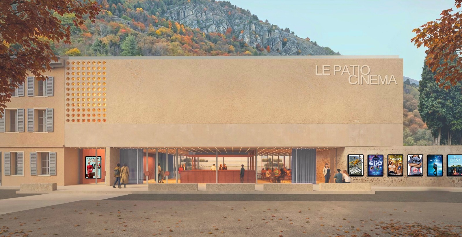 Le Patio sera implanté sur une friche urbaine de 900 m², située en face d’un parking de 250 places et à proximité des infrastructures de restauration existantes. L’établissement remplacera l’actuel cinéma Rex, dont les exploitants, Sébastien et Marjorie Tacquet, ont enregistré une augmentation notable des entrées depuis leur reprise en 2018, passant de 20 000 à 38 000 en 2024 pour leur unique salle de 140 fauteuils. Le nouveau complexe prévoit trois salles – avec des capacités de 178, 146 et 70 places, pour un total de 394 fauteuils – équipées de projecteurs laser, de son Dolby 7.1, et du système Twavox pour l’accessibilité sensorielle. Le Patio intègrera un espace ciné-café de 120 m²  modulable en salles de réunions ou de réceptions. Quant au patio extérieur de 140 m² – qui vaut son nom au cinéma – il est destiné à devenir un véritable lieu de vie et d’animation avec notamment les partenaires ou associations locales.