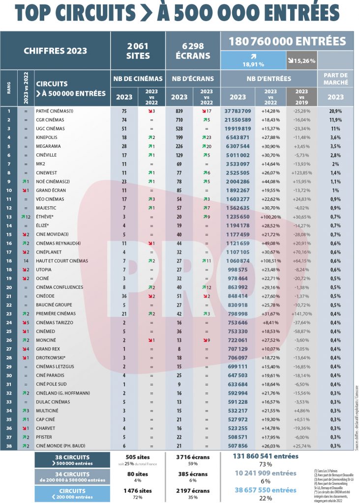 Cinémas : 75 | Écrans : 839 | Entrées 2023 : 37 783 709