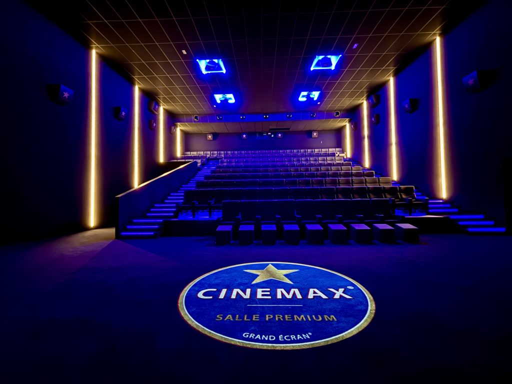 Les volumes pleins des salles mettent en valeur la transparence du hall dont la façade vitrée offre une orientation à la fois vers le parking et sur la rue. « Cette disposition permet d’avoir un large espace de rencontre sécurisé pour les futurs spectateurs et facilitera la gestion des flux d’entrées et de sorties dans l’exploitation quotidienne du site », développe Sacha Fridemann. Quant à l’équipement, les six salles échelonnent leur jauge de 60 à 320 fauteuils avec des écrans de 8 à 18 mètres de base et équipées de projecteurs laser 2K et 4K et de son Dolby Atmos, Ovation et Dolby 7.1. La salle 3 de 150 places sera la septième CineMax, le concept premium maison, avec des fauteuils électriques inclinables, repose-pieds au premier rang et son Dolby Atmos.