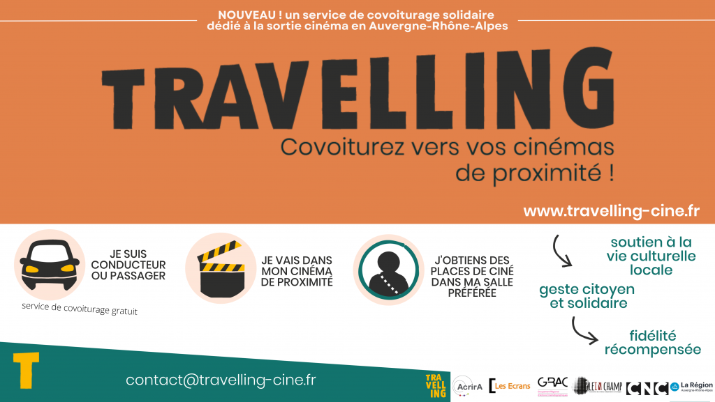 « Un service solidaire. Une fidélité récompensée » : tel est le slogan affiché sur la page d’accueil de la plateforme Travelling qui, après une phase test cet été, est désormais opérationnelle pour une vingtaine de cinémas d’Auvergne-Rhône-Alpes. Leurs spectateurs, après avoir créé un compte, peuvent partager – gratuitement – les trajets, et ainsi partager sur les films qu’ils ont vu ensemble – et pour lesquels ils gagnent des places gratuites. Lancé par l’Acrira (Association des cinémas de recherche indépendants de la région alpine), puis rejoint par les autres réseaux de salles de la région (le Grac, Les Écrans et Plein Champ), le projet est né pendant le confinement, à partir de plusieurs constats. Si l’on sait que près de 90 % des émissions carbone des cinémas sont liées à la mobilité des spectateurs, « les salles situées en milieu rural ou en périphérie savent aussi que leur public, confronté au manque de transports en commun, a parfois du mal à se déplacer », explique Anne Perrel, chargée de développement à l’Acrira. « Nous avons fait un état des lieux de ce qui existait déjà en matière de covoiturage, mais aucune application n’était dédiée à la sortie cinéma »… et toutes passent par une transaction financière entre usagers. Or du côté de l’Acrira, on préfère « mutualiser et jouer collectif. La particularité de notre dispositif est d’être totalement solidaire, le but étant de développer des communautés de spectateurs et de les inciter à sortir de la solitude. Sans oublier, bien sûr, la motivation écologique. »