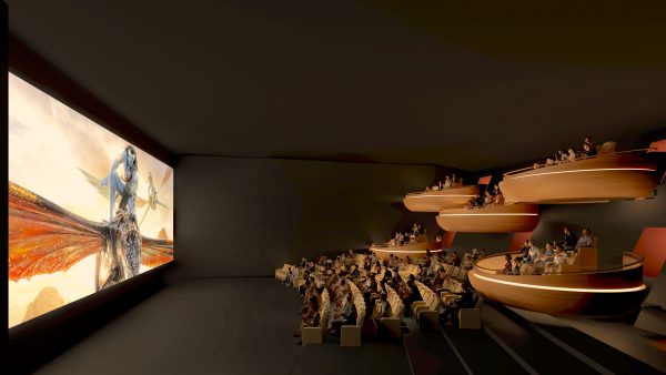 Pour ce projet, c’est donc une salle de 160 sièges environ qui va voir le jour, dotée d’un écran de 14 mètres de base. Mais, en raison d’immeubles aménagés au-dessus du cinéma et donc d’une hauteur plus réduite, la salle Ōma va arborer un design hybride : si la moitié de la jauge sera disposée en balcons, l’autre aura un aspect plus traditionnel avec un parterre de fauteuils (voir photo). « Pour cette raison, il y aura deux tarifs distincts », explique Daniel Taillandier, qui concède que la difficulté principale du projet résidait dans son insertion dans une coque déjà construite.