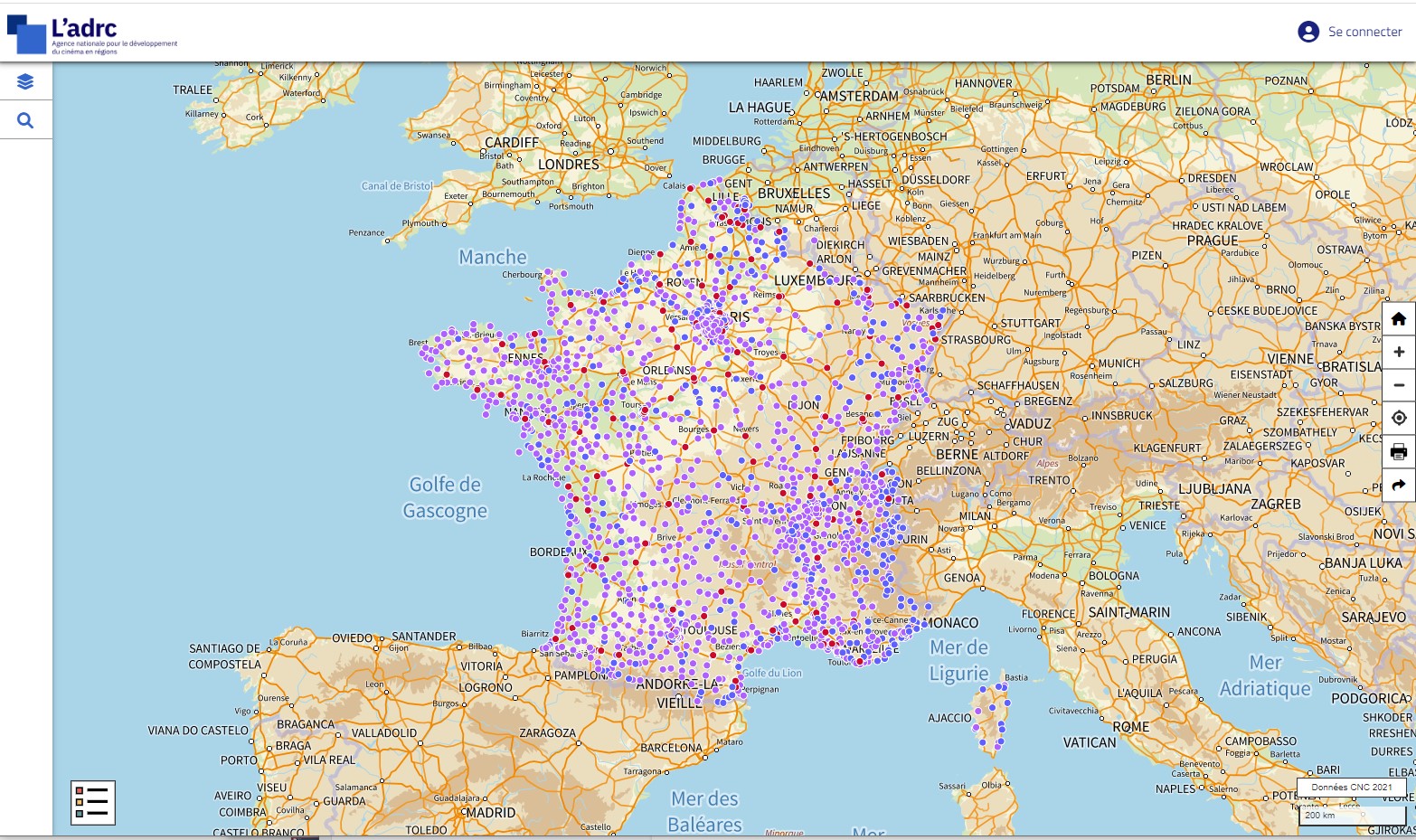 L’Agence nationale pour le développement du cinéma en régions met en ligne une carte ergonomique répertoriant plus de 2 000 cinémas et toutes les informations qui leur sont associées.