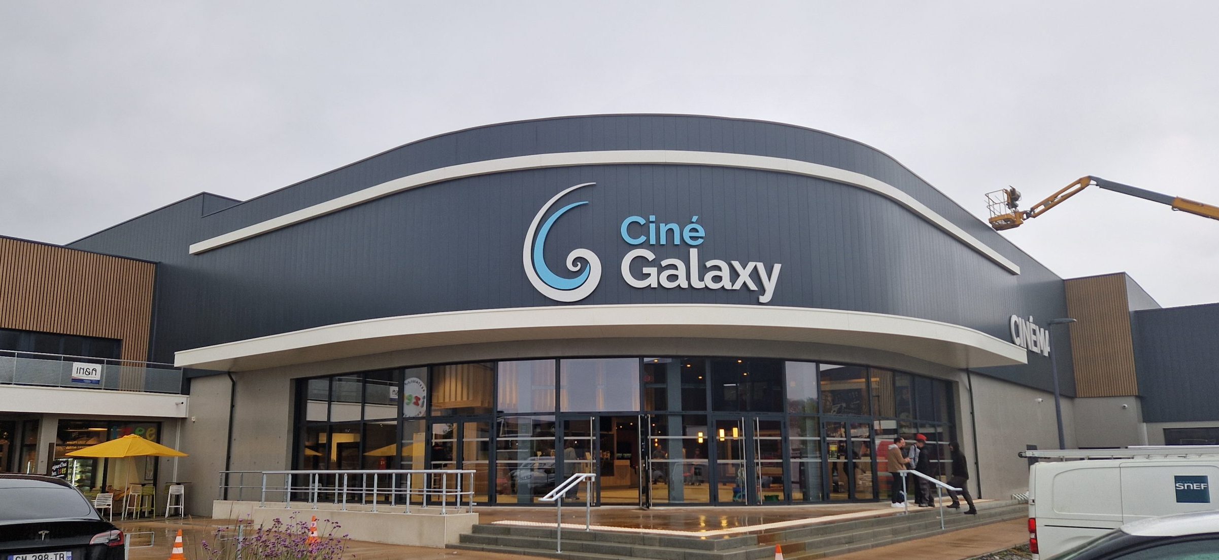 Le Ciné Galaxy, validé en CDACi en juin 2022, a été construit dans la zone commerciale du Bois Noir, à l’entrée de la ville et proche du centre, qui accueille en outre un hôtel, plusieurs restaurants, des bureaux… et des dentistes. Le complexe ouvre donc aujourd’hui ses 5 salles : une grande de 260 places, deux moyennes (de 180 et 120 places) et deux petites (de 80 et 70 places) pour un total de 724 fauteuils, sans oublier un grand hall lumineux. Le chantier aura coûté près de 5,5 millions d’euros, financés pour 1/5e avec des aides du CNC mais aussi de la Ville, de la Communauté de communes, du Département et de la Région.