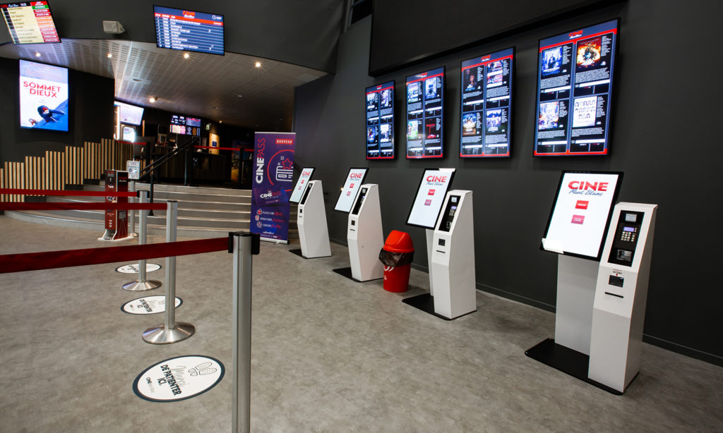 Depuis trois ans, le Ciné Mont-Blanc de Sallanches, ouvert en 2002, a bénéficié de plusieurs phases de travaux. « Le site vieillissait bien mais c’était important de conserver son standing », précise Adrien Baud. En 2018, le cinéma s’est doté de deux salles supplémentaires, pour offrir aux spectateurs un multiplexe de dix salles (1 500 fauteuils), dont cinq équipées en laser et une en Dolby Atmos, et qui avait réalisé 415 000 entrées en 2019. À l’automne 2020, une deuxième tranche de travaux a permis la création d’un parking et d’un restaurant. Enfin en janvier 2021, l’exploitant a achevé les dernières touches de cette ambitieuse rénovation au long cours. Sous la houlette de Cécile Bukowski, architecte d’intérieure à Aix- les-Bains, cette ultime phase a permis de repenser totalement le hall, le comptoir, les circulations et les volumes, dotant au passage le Ciné Mont-Blanc de quatre nouvelles bornes automatiques, de nouvelles caisses, d’un écran géant et d’affichages dynamiques.