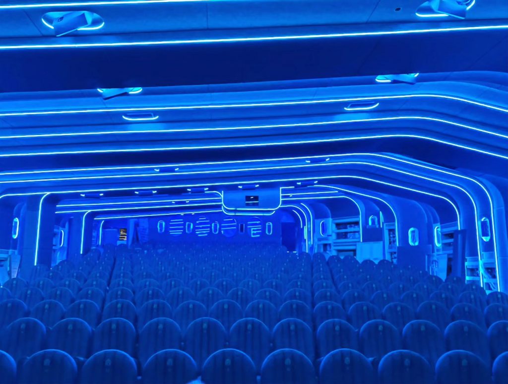 En fonction du film, la salle peut être plongée dans différentes ambiances colorées ©Grand Rex