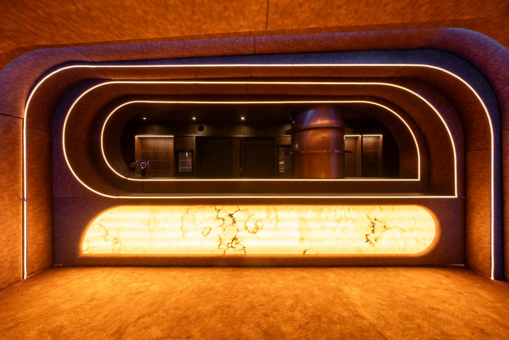 Parmi les autres particularités, notons la possibilité, via les bandes Led qui quadrillent la salle, de changer d’atmosphère et d’ambiance lumineuse en fonction du film diffusé. Au fond de la salle, un bar en marbre permet aux spectateurs de profiter de boissons et confiseries sans quitter l’espace. Conçue par le cabinet ABP Architectes, la salle Infinite est accessible au tarif plein de 18 €, réduit de 15 € tandis que les moins de 16 ans et les séances matinales sont à 12 €.