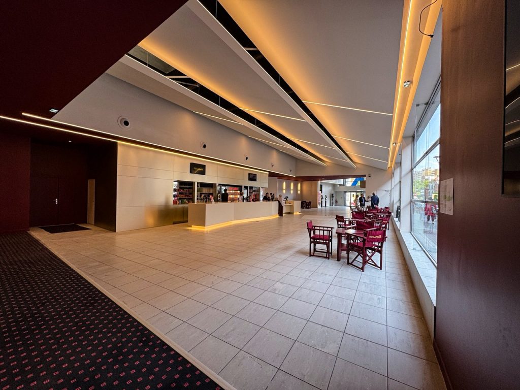 En plein cœur du centre-ville roubaisien, le nouveau site de Megarama a été inauguré après plusieurs mois de travaux, sans pour autant avoir fermé ses portes. Acquis auprès d’UGC il y a près d’un an, le cinéma « avait besoin d’une rénovation de fond en comble », explique Jean-Pierre Lemoine, fondateur et président de Megarama. Les neufs salles ont donc été intégralement rafraîchies, de la moquette au projecteur en passant par les fauteuils, dont le nombre est resté identique. Seule exception : la salle Imax, baissée à 353 places et qui signe le quatrième partenariat entre le circuit français et la société canadienne, après les équipements de Bordeaux, Givors et, plus récemment, de Boulogne-sur-Mer. Dans le hall, le traditionnel Megarama Café introduit une saveur locale avec « une bière produite par la brasserie locale des Lys », précise Olivier Labarthe, directeur général adjoint.