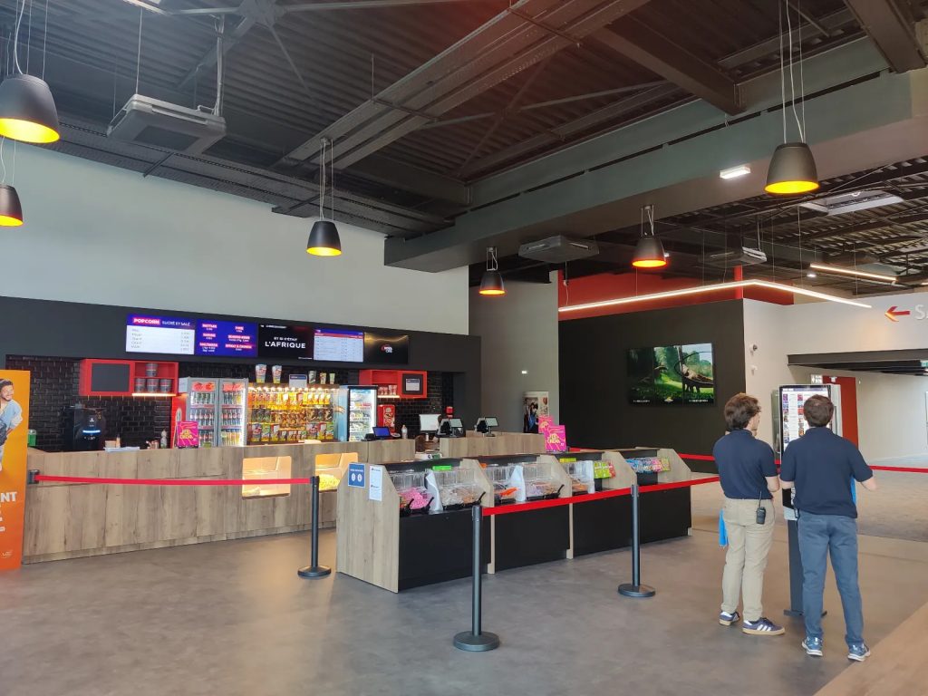 En plus d’abriter les bureaux du groupe Tabaraud, les 2 400 m² du site accueilleront sept écrans pour 632 fauteuils, soit moins que les 812 prévus lors du passage en CDACi il y a deux ans. Une baisse qui s’inscrit dans la stratégie « entièrement premium » que l’exploitant applique au Nova Ciné, pour offrir « la même qualité de confort et d’espace, de la première à la dernière salle ». Ainsi, la plus grande compte environ 220 fauteuils, et toutes sont équipées de sièges électriques. Côté son, quatre salles sont équipées en DTS:X et les trois autres en DTS Surround. Un choix « logique » pour Thierry Tabaraud qui, tout en prenant en compte le taux d’occupation moyen d’un cinéma, ne souhaite pas « entendre un spectateur demander si un film passe dans la bonne salle ». Le hall intègre un espace confiserie et détente.