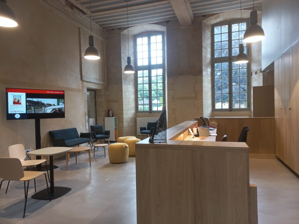Situé rue de l’église depuis 1941, l’ancien cinéma de la petite ville du Calvados réclamait une mise aux normes trop coûteuse et complexe. Le public lui avait fait ses adieux le 1er juin, avec le premier film projeté en ses murs, Paul dans sa vie, un documentaire sur un paysan local de Rémi Mauget. Depuis le 5 juillet, le mono-écran a migré à une centaine de mètres, dans l’ancien réfectoire de l’abbaye Notre-Dame de Saint-Pierre-sur-Dives, fondée au XIe siècle par la comtesse Lesceline – grand-tante de Guillaume le Conquérant – pour abriter une communauté de moniales, remplacées par la suite par les bénédictins. C’est l’architecte en chef des monuments historiques, Pascal Prunet (intervenu sur de prestigieux chantiers, comme Notre-Dame de Paris), qui a conçu cette salle unique, au sein d’un bâtiment classé.