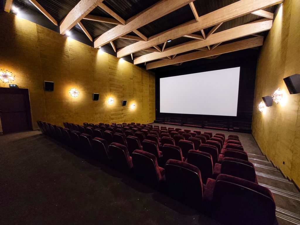 En matière de chauffage, la configuration du terrain a finalement empêché de suivre la piste de la géothermie, mais la responsable des lieux peut compter sur la performance bas-carbone de sa chaufferie biomasse, capable de contenir une réserve de 8 tonnes de granulés bois. Côté hall, on ne trouve ni bornes à tickets ni distributeurs de confiserie, mais un ancien comptoir à pharmacie, acquis – comme beaucoup d’autres mobiliers du cinéma – d’occasion en salle des ventes. Une tisanerie proposera boissons et petite restauration (salades, soupes, quiches) en “participation libre et nécessaire”, du moins le temps de trouver une nouvelle collaboration pour une gestion plus autonome de l’offre alimentaire du cinéma.