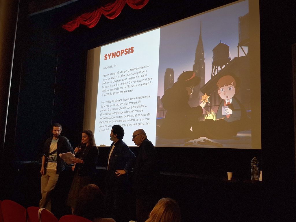 Trois work in progress ont en outre été présentés par leurs équipes. Les Enfants de la liberté, actuellement en post-production après dix années de travail, a été introduit par ses coréalisateurs Rémy Schaepman et Léahn Vivier-Chapas. Cette plongée dans le New York de 1941 suit un jeune garçon allemand accompagné de son amie, une orpheline juive, qui va devoir déjouer un complot nazi contre un navire de réfugiés européens, pour tenter de retrouver son père. Accessible à partir de sept ans, le film issu d’un roman américain, se veut « à hauteur d’enfant, mais en même temps ancré dans la grande Histoire », précise Rémy Schaepman.