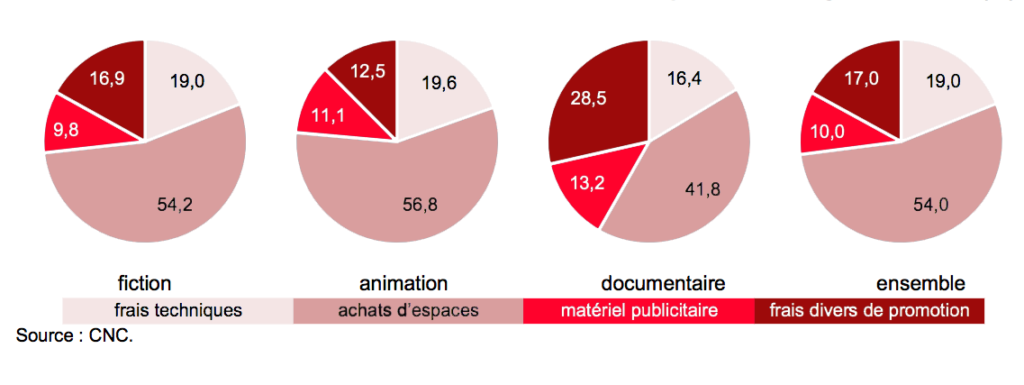 Structure des coûts de distribution des films d’initiative française (%) :