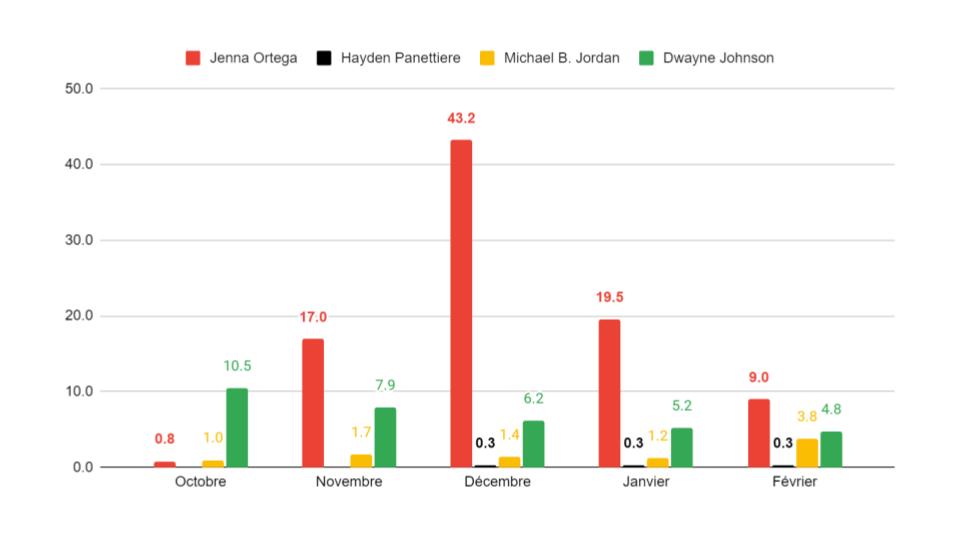 Scream VI se présente toutefois sûr de ses forces. « Depuis la série Netflix Mercredi, Jenna Ortega a acquis une popularité immense qu’elle n’avait pas lors de Scream 5, et qui nous permet de toucher facilement un public plus jeune », note Thomas Pawlowski, directeur marketing de Paramount Pictures France, qui distribue le film. L’actrice américaine était ainsi la personnalité la plus recherchée en décembre sur AlloCiné, avec des consultations 43 fois supérieures à la moyenne des autres fiches personnalités et 22 fois supérieures sur la période octobre 2022-février 2023, d’après des données fournies par The Boxoffice Company.