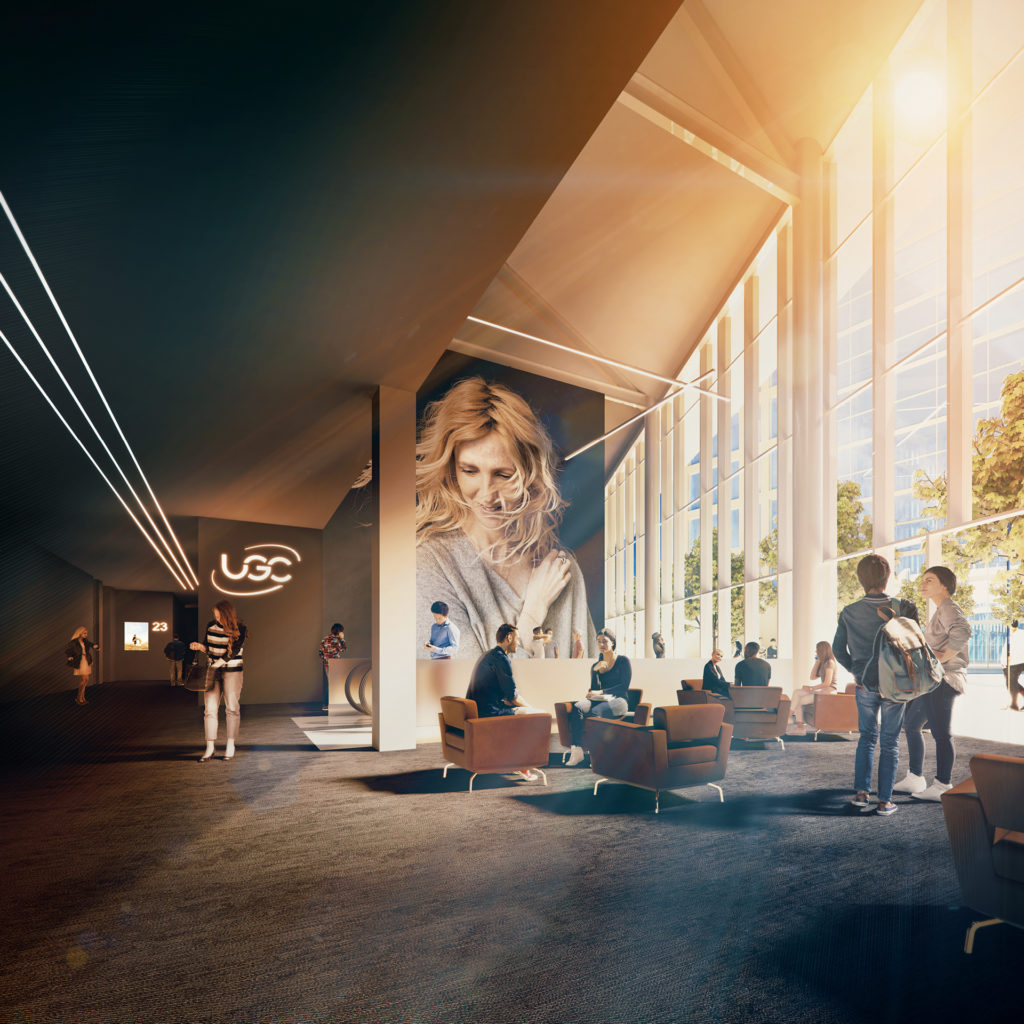 C’est au cœur du néo-quartier de Montaudran, à quelques minutes du centre-ville et des pôles d’activités toulousains, qu’a été érigé le nouvel UGC. Un bâtiment aux lignes épurées, dessiné par l’architecte Pierre Chican, qui a notamment travaillé sur le site de Plaisir ou la restructuration de celui de Vélizy, et dont l’intérieur reste fidèle aux codes du circuit : d’immenses photos habillent les murs du hall et des couloirs. Passé l’exposition de ces formats hors norme, le public découvre ensuite les sept salles et 1 330 fauteuils, étalées sur les 5 200m2 du site.