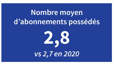 Si la progression de la SVOD ralentit en 2021, le multi-abonnement se développe, le plus souvent associé à une offre de musique ou de TV payante (23 % des internautes, +6 points en deux ans).