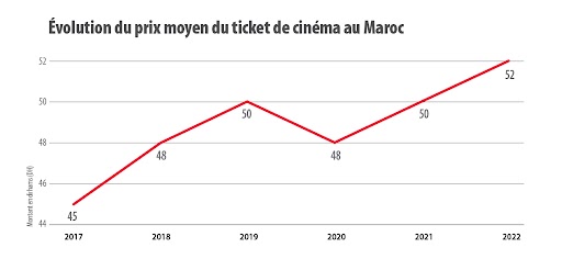 Ainsi, le prix moyen du ticket s’élève en 2022 à 52 DH (4,8 €), soit 1,3 % du salaire moyen marocain (autour de 4 080 DH), en hausse par rapport aux années précédentes :