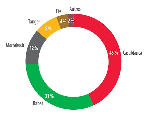 Du fait du maillage du parc de salles marocain, fortement concentré dans les zones urbaines, 3 entrées sur 4 ont été enregistrées dans les 10 cinémas répartis entre Casablanca et Rabat :
